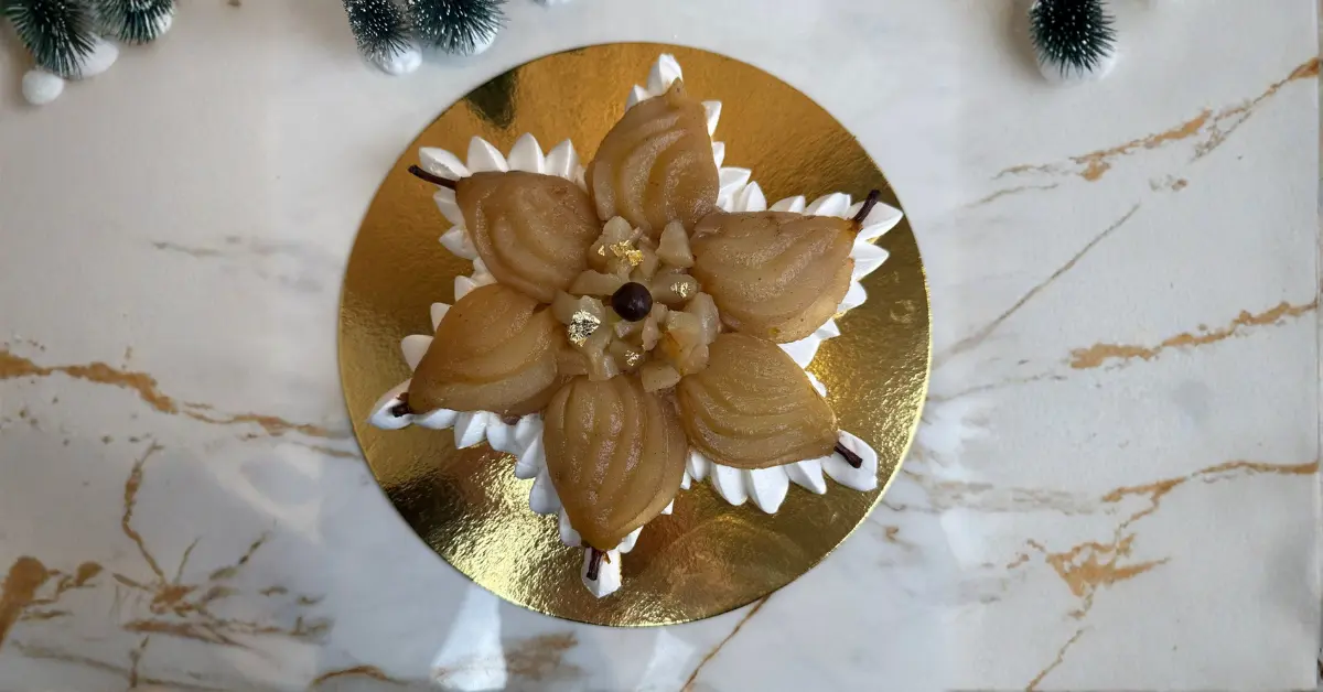 Cette pavlova poire chocolat associe une meringue croustillante et fondante, une crème légère chocolat mascarpone et des poires pochées parfumées. Un dessert élégant, facile à réaliser et idéal pour terminer un repas sur une note fraîche et légère.