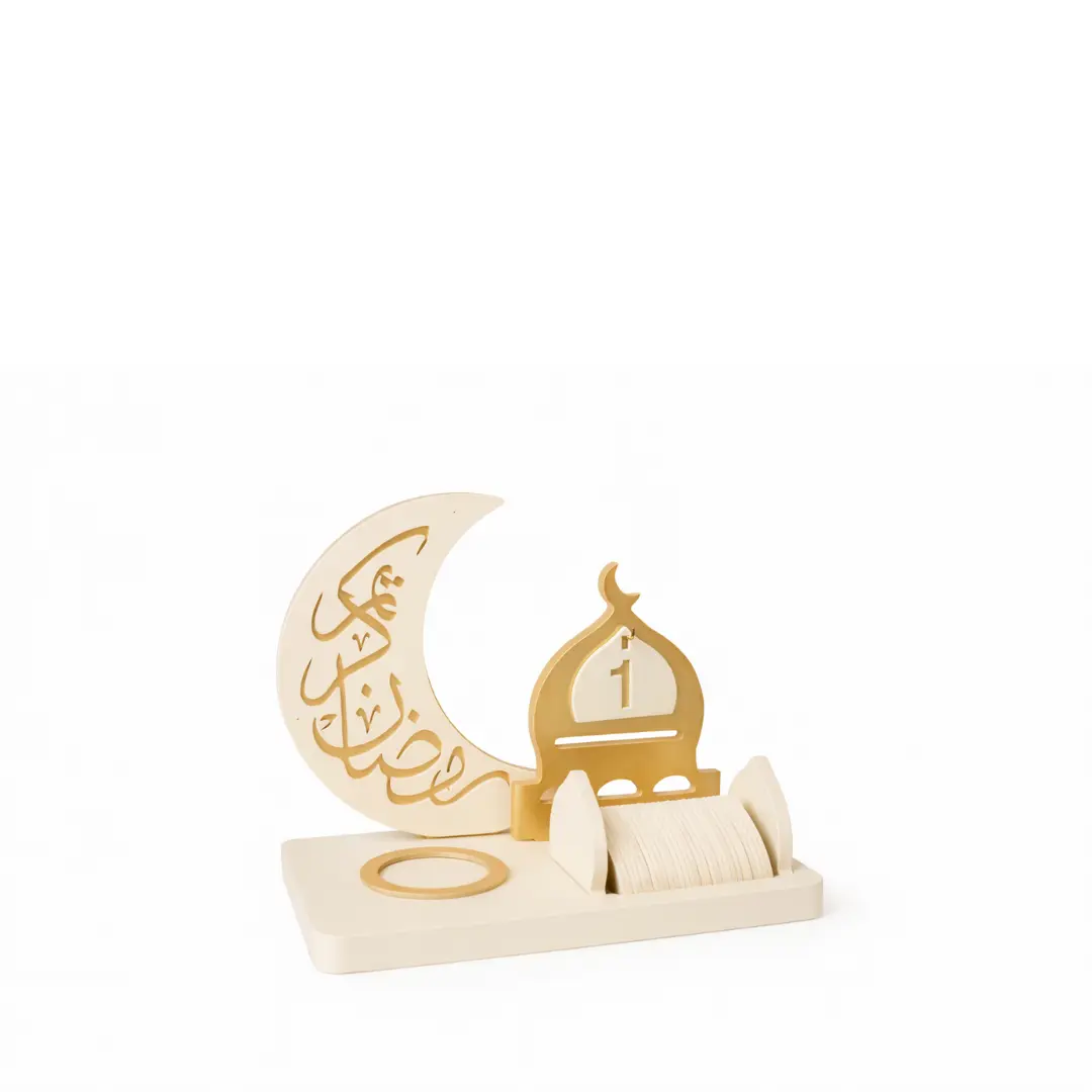 Associez le calendrier Hilal à une lanterne lumineuse ou une guirlande LED pour créer un coin Ramadan chaleureux et spirituel. Placez-y une bougie parfumée pour accompagner les soirées du mois sacré.