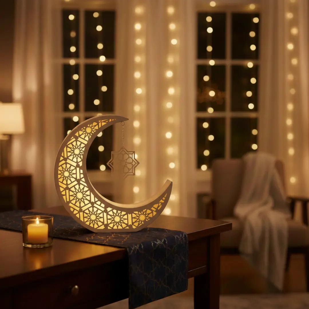 Associez plusieurs lanternes Hilal de tailles ou de coloris différents pour créer une composition lumineuse harmonieuse, ou combinez-les avec d’autres décorations de la collection Ramadan pour un univers cohérent et élégant.