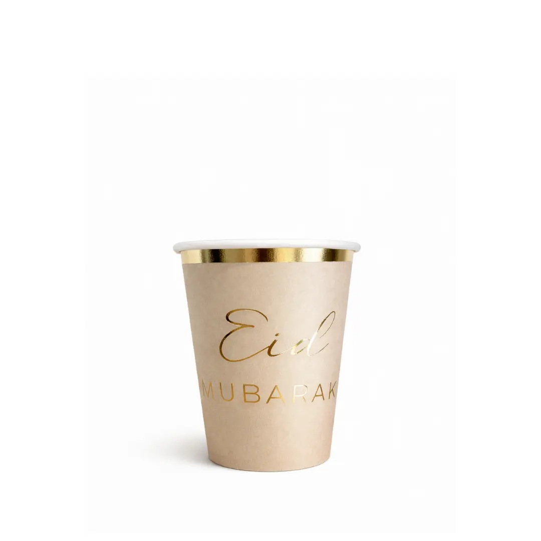 Gobelet Eid Mubarak couleur sable avec liseré doré – collection Sable Sublime