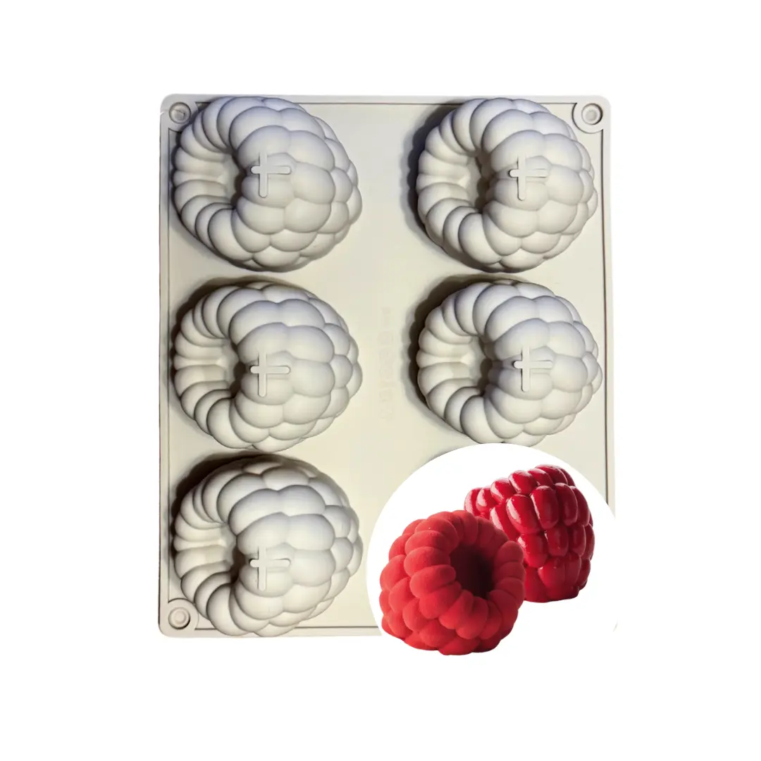 Réalisez des desserts bluffants avec ce moule en silicone en forme de framboise, idéal pour les créations en trompe-l’œil.