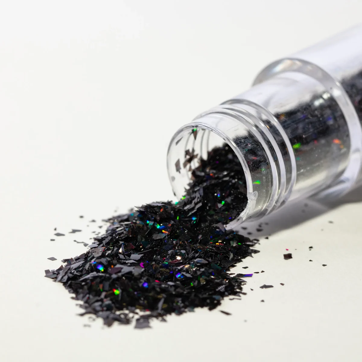 • 3g de sprinkles avec des paillettes irisées Noires. 100% comestible et adapté aux végétaliens, fabriqué avec des colorants d’origine végétale.