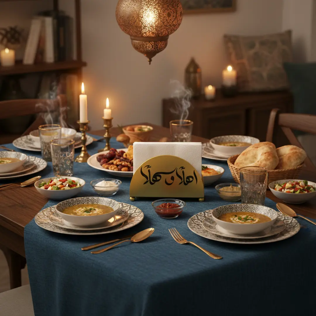 ramadan mubarak-sets de table en toile de jute motif oriental blanc pour décoration ramadan-perledoree.fr