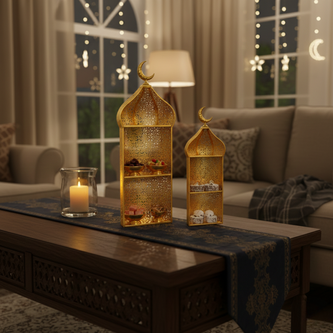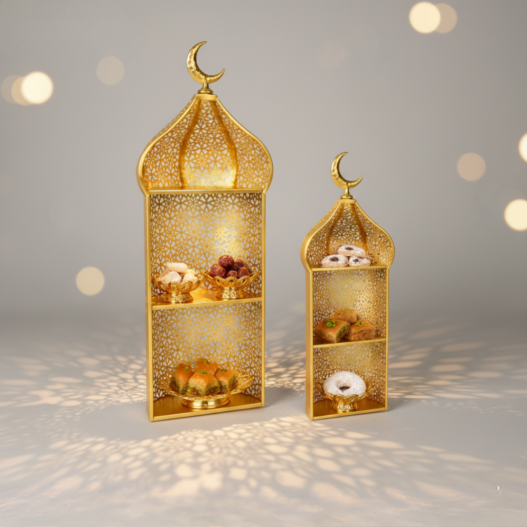 Associez les deux présentoirs Qafas crème à des éléments dorés ou naturels pour une ambiance élégante et chaleureuse. Parfait en duo sur un buffet ou de part et d’autre d’une table pour structurer l’espace avec raffinement.