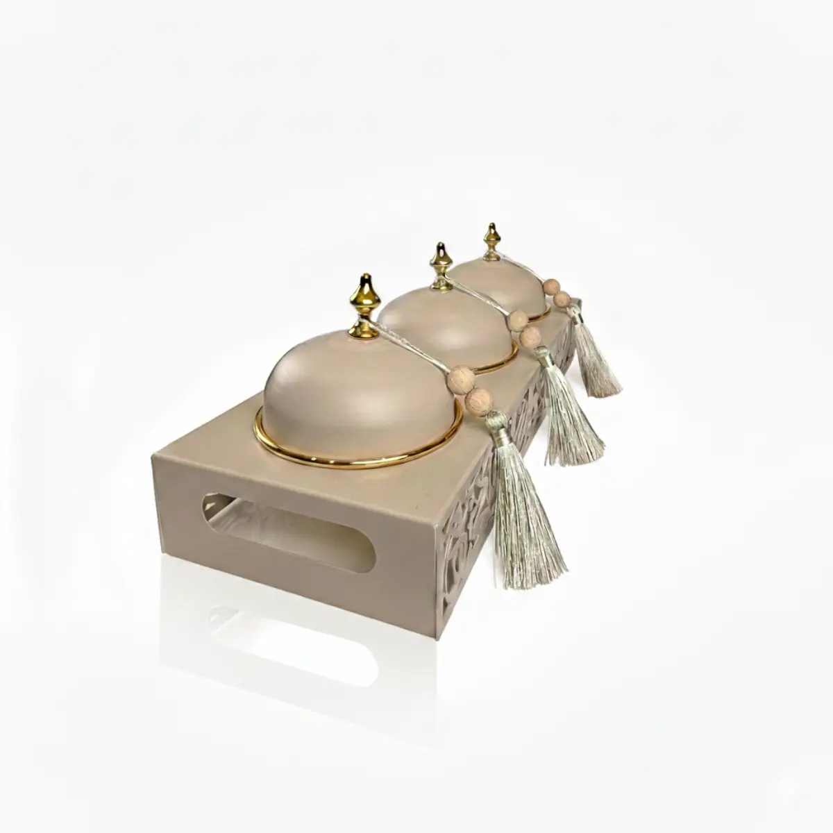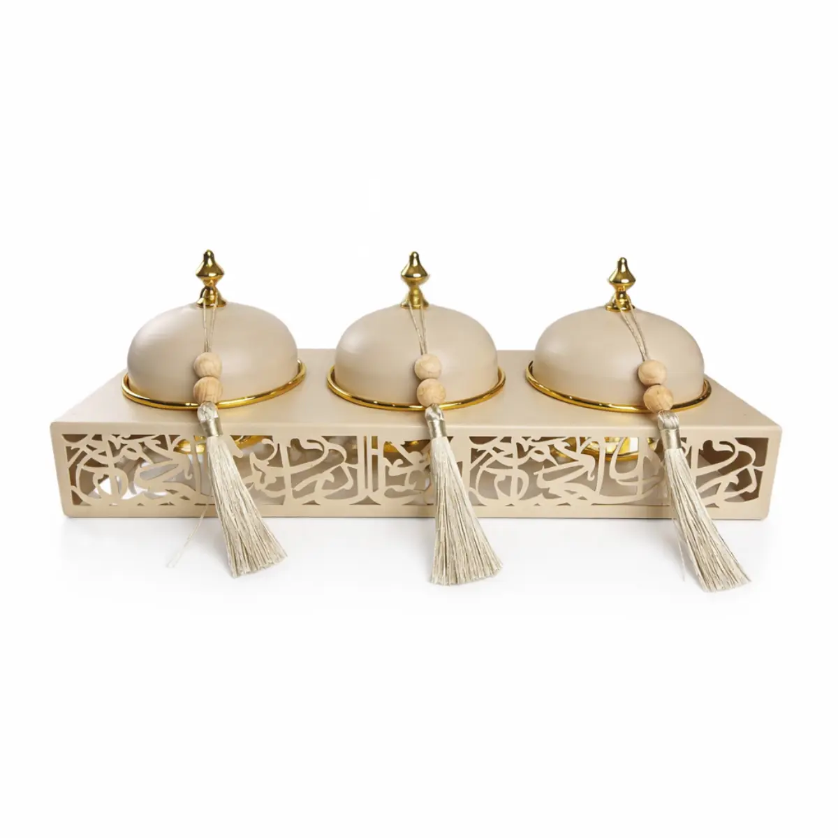 • Contenu : Plateau + 3 contenants avec cloches décoratives